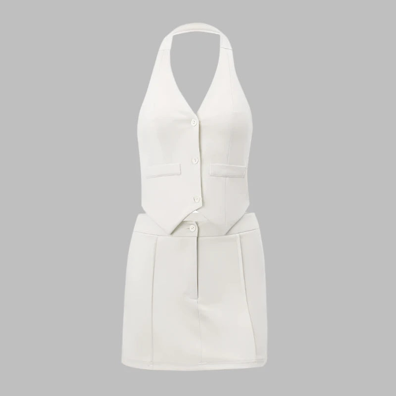 Sleek, simple, and effortlessly hot — the CityPulse Set is your go-to for street-chic styling with a retro edge. This two-piece combo features a flattering V-neck tank and a curve-loving high-waist bodycon skirt that hugs in all the right places. Whether you're strolling downtown or hitting up a rooftop party, this look serves casual confidence with a bold silhouette.
